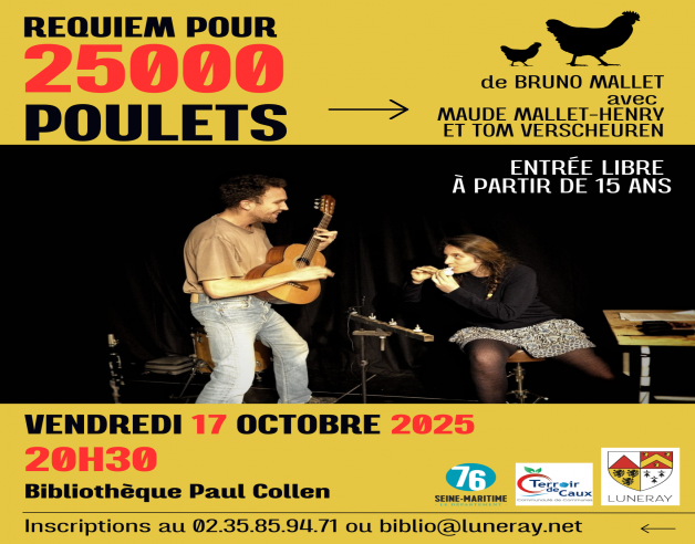 Requiem pour 25000 poulets est un spectacle mis en scène par Bruno Mallet, comédien et conteur. Il aborde les problèmes liés à l’élevage intensif et la couverture médiatique d’un fait...